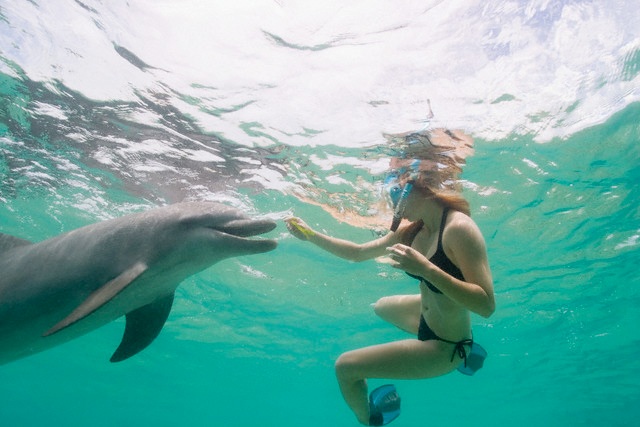 Genießen Sie das Erlebnis Ihres Lebens, wenn Sie mit den Delfinen interagieren und schwimmen. Vielleicht entdecken Sie auch andere einzigartige Bewohner des Riffs, darunter Schildkröten und harte Korallengärten.