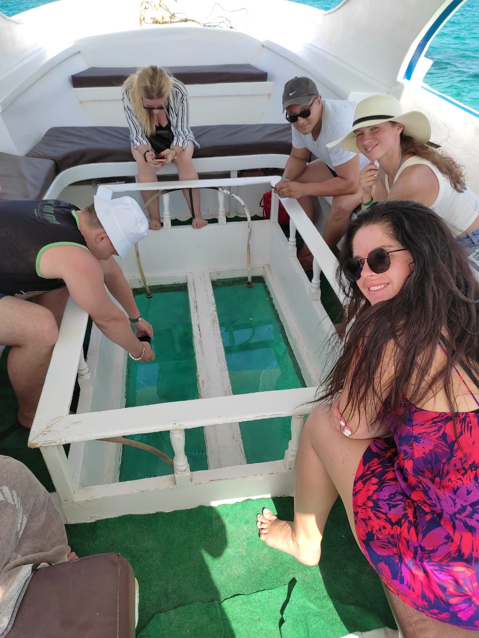 The glass boat is available for 1 to 6 persons at the same cost, and the experience includes soft drinks, transfers, and a very nice, amazing trip. You’ll have 3 hours of snorkeling and discovery of the underwater secrets with your family and kids. If you are interested in fishing, we can add that to the same trip and extend it to 4 hours at a small additional cost, creating a memorable experience in the Red Sea.